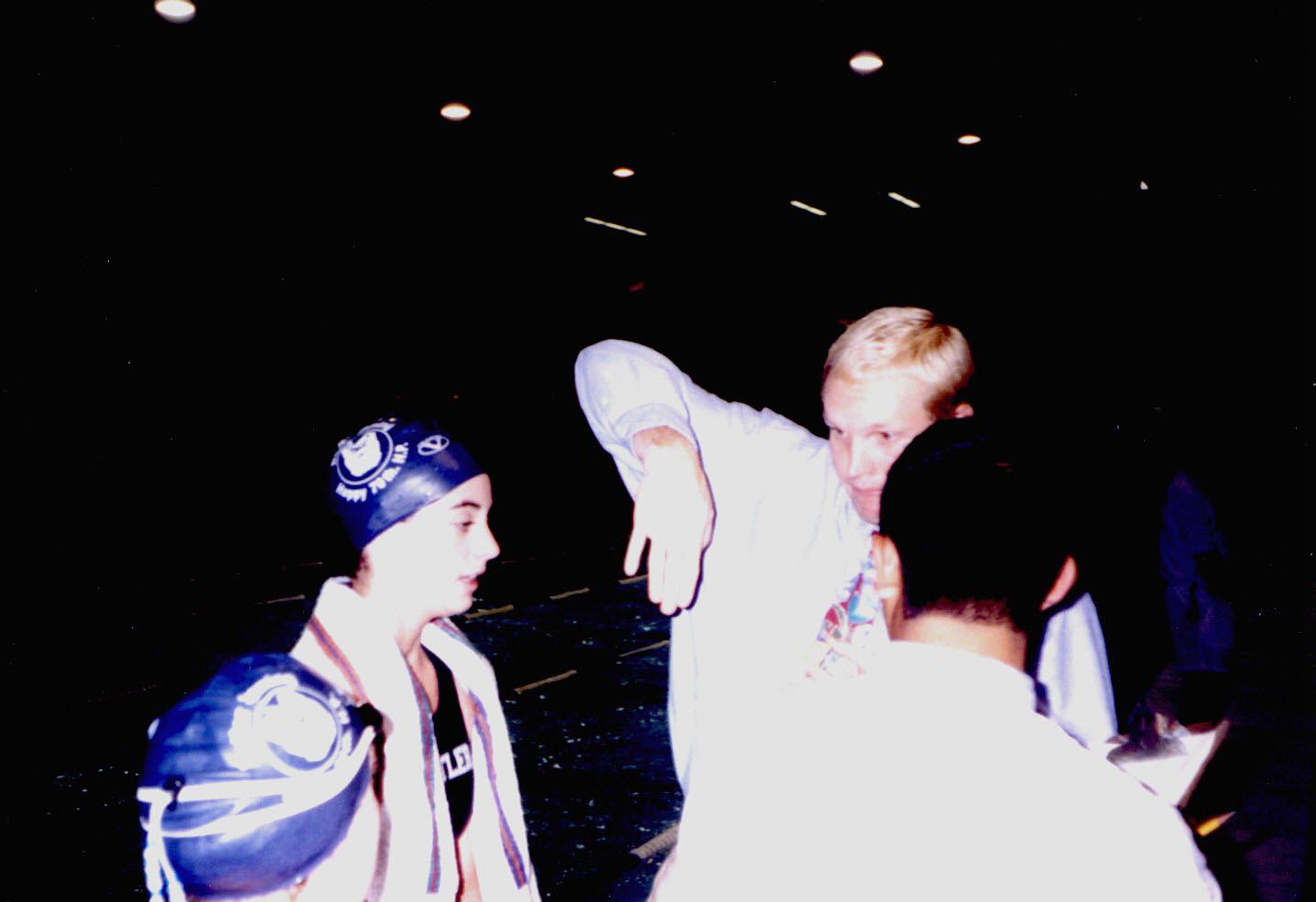 Coach Brennan takes some time to help Beth Farris with her stroke.