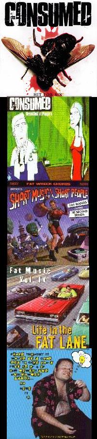 Hit For Six CD/LP Fat Wreck Chords -n/a Breakfast at Papa's EP Fat Wreck Chords -Heavy Metal Winner -Bye Bye Fatman -Brutal Tooth -Stand Under Me -Nonsense Cone -Bigger Shoe Short Music for Short People Compilation Fat Wreck Chords -Delraiser Part III: Del on Earth Life in the Fat Lane: Fat Music Volume 4 comp Fat Wreck Chords -Twat Called Maurice Free Cd comp Fat Wreck Chords -Bye Bye Fatman