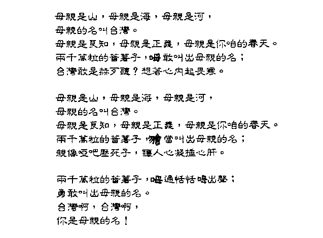 “ 母 親 的 名 叫 台 灣 ” 。 作 曲 和 作 詞 為