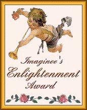 This award is another special award given to me by Linda from ~~Imagine That~~ Linda is another very talented lady who made all her design her self, creates banners for your homepage , has alot of hobbies and it shows make sure to visit her site , Thank you Linda for my Enlightenment Award May GOD be with you always.
