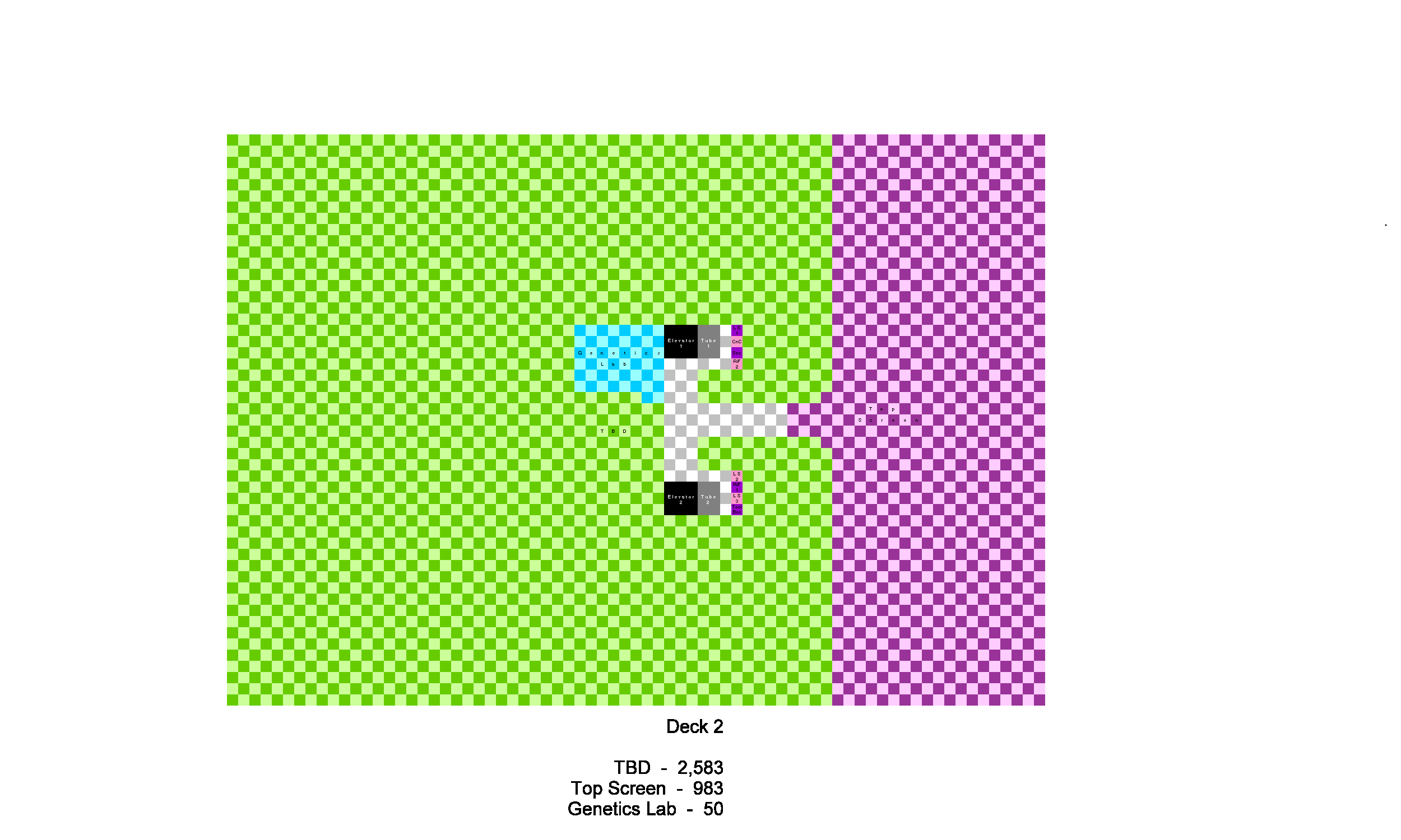| Deck 2 houses the top Screen generator and the Genetics Lab. Part of the Tacheon-Beam Dictor is also found on this deck. |