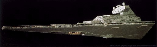 The pride and joy of the Empire. This mammoth can sling unrelenting amounts of firepower into virtually any vessel in the galaxy and expect victory. It can easily hold a star system in its iron grip. By Endor there were 25,000 Imperial Star Destroyers in service. This ship lacks raw material recycling facilities unlike other ships it has to debris and waste into space. ITs primary docking bay is large enough to hold a Corellian Corvette and is used to launch probes and starfighters. The second launch bay is used to launch invasion equipment and shuttles. Its reactor puts out as much power as a star. The only vessel during the time of the Rebellion that could challenge this hulking beast was the Mon Calamari Star Cruisers. Fortunately the Imperial Star Destroyer cannot rechannel lost shields through back up shields thus giving the MC-80 an edge on it in combat. It is said that this warship can destroy whole fleets of small ships and can turn a planet's surface to a charred mass of carnage and death within a matter of hours.