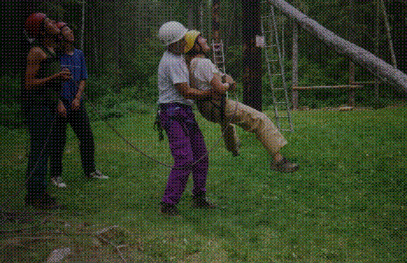 The third last day of the course we spent on the rope's course, which consisted of rope obstacles up in the air. When you finished the whole course you got to jump off a platform while someone was on belay. This is me jumping off. It was very cool.