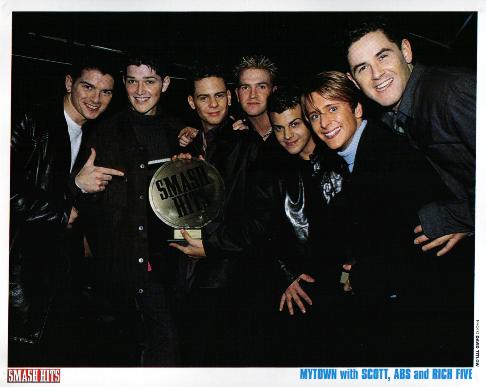 "Everybody say CHEESE!!" This picture was taken backstage at the Smash Hits Awards in Dec. 1998. They are pictured here with some members of the band "5ive" who won a Smash Hits Award.