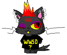 Name: Noah Species: Politically Incorrect Kitty Where found?: Random cult Sex: Male This fashionable cat has 6237637864374 piercings (6237637864366 in places that can't be shown). He likes to torture small animals and children, and highly dislikes Christian families. Other than that, he's a very cuddly cat and would be a charming addition to any family! |