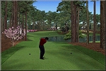 The Augusta National Golf Club’s Par 3 course was built in 1958 by architect George Cobb and club chairman Clifford Roberts. The current course actually has 11 holes in all—the original nine, designed by Roberts and Cobb, plus two more holes, designed by Tom Fazio in 1987. The nine hole competition course is a par 27, 1,045 yards, and plays over DeSoto Springs Pond and Ike’s Pond. For the tournament, seven of the Roberts-Cobb originals are used, and the two Fazio holes (over Ike’s Pond) become the 8th and 9th. (The course record, 20, by Art Wall and Gay Brewer, is pre-Fazio and therefore has an asterisk next to it). The post-1987 record is held by Chip Beck, who shot a 21 in 1993. The nine hole version of the course was released by RGD on May 31, 2000, expected completion of the new 18 hole version is May/June, 2001. Please see below for screenshots of some of the holes at the Augusta Par 3 Course and links to download the 9 hole course.