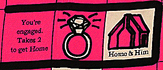 And, speaking of symbols, here's the picture accompanying a square reading "You go everywhere with your roommate. Back 2." Of course, the meaning is that the roomie is equivalent to a ball and chain, but, boy-oh-boy, put that frankfurter next to that lock, and well, my mind begins whirring away in certain directions.