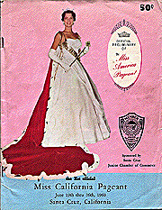 Doing research on the Miss America pageant for the Vonda Kay Van Dyke article in Mystery Date #4 really got me all hopped on Miss A, so when my husband pointed out a copy of the 1960 Miss California Pageant program at an antique store in Santa Cruz, California, well, I had to have it. While I spent more for it than I would have liked (oh, a little more than a new CD but less than the leather jacket I just got at Goodwill), it's been well worth it.
