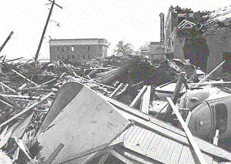 Beach, Gulfport, Biloxi, and Ocean Springs, with heavy damage extending far beyond these Cities and Towns. At least 250 lives were lost, with another 100 missing. Some 5,000 homes were totally destroyed and 40,000 heavily damaged. Many businesses were also totally destroyed, and even more were damaged. A storm tide of 24.6 foot occurred at Pass Christian Mississippi. Reported from the Library in Pass Christian following the storm: "On the first floor, sand covered the floor, along with glass, ceiling tiles, books, shelves, and broken furniture. On the second floor, the collection had not received the prolonged soaking that the downstairs books had. But even so, many of them which had been washed or blown off the shelves, were not salvageable and had to be discarded." Other Libraries along the Coast sustained severe damage, and many of their irreplaceable collections were lost and/or were not salvageable. End of text added.) |