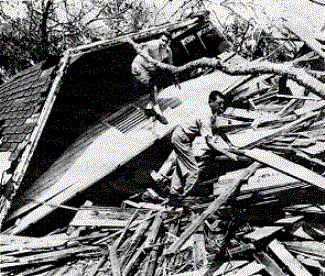 and elsewhere, was extracted and edited from the November 1969 issue of the American Legion Magazine. The article, accompanied by pictures, was written by Robert B. Pitkin who was the Editor of the American Legion Magazine in November of 1969. The magazine was provided by Oliver Oren Williams, Jr., a Member and Past Post Commander of American Legion Post 119 in Gulfport, Mississippi. Our thanks to "Red" Williams for his wisdom in keeping his copies of American Legion Monthly Magazines going all the way back to 1969 and further. This extract was edited by Robert J. Dougherty, a Member of Post 119 in Gulfport Mississippi. Bob & his family chose to remain in their family home about 1/4 mile north of the Sand Beach, in the small town of Mississippi City between Biloxi and Gulfport. Their home received no damage due to the height of the homes foundation above Mean Sea Level, and a "forest" of very old and large Oak, Hickory, Pine, and other trees between their home and the beach. Bob & his family all said, "We will never be so foolish again!!!" Bob felt he was in a good position to do some editing of this article, putting some words in past tense rather than present tense at some points. Also, for continuity, some paragraphs were moved from one point in the article to another point. Also, some sentences were moved from one paragraph to another, or from one point in a paragraph to another point in the same paragraph. All of the text in the article is presented herein. "Notes" show texts, pictures, and maps added to the article to help viewers better understand Camille. All the pictures in the article were black-and-white, and all are presented here. The magazine's age and wear-and-tear, required that considerable work had to be done to the pictures in the article. The ravages of time to the magazine were removed as best possible, the pictures were changed slightly in brightness and contrast, and sharpened where necessary. All of the pictures herein show the full width and height of the pictures with nothing left out, but some have been repositioned in the article to locations more suitable to the text. And now to the article titled "The Continuing Disaster on the Gulf Coast" written by Robert B. Pitkin, Editor of the American Legion Magazine in November of 1969. |