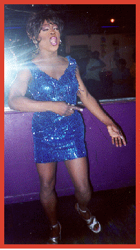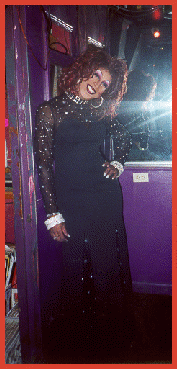 The girl in front is the truly special Teryl Lynn Foxx, who has won countless awards for FI pageants. She's also a fulltime truly transgendered girl (as opposed to the part-time "drag queen" guys) although I think that she's still pre-op and she's involved in many transgendered oriented organizations in the New Orleans area. Not just a beauty but also a brain, she's a college grad who used to teach and do guidance councilling. I met her by accident at another club a couple of nights later without all the fancy clothes and greasepaint and she's just as lovely a girl in jeans, little or no makeup, and her cute curly natural hair. A real nice person too. I could see that all the locals knew and loved her. For closeups and personal info check out her website below