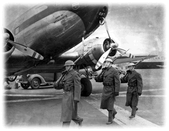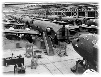 Douglas Aircraft plant in Park Ridge, IL. The wings are The Illinois Reserve Militia guard at Midway Airport. 1942 attached to the fuselage of big C-54 cargo planes. 1944