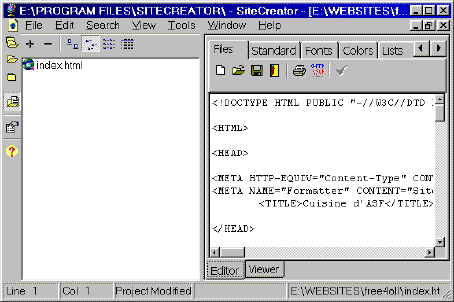 SiteCreator You want to create your own homepage, but you can't seem to find the right tool to help you? Try SiteCreator! SiteCreator is an HTML editor with a lot of extras, like support for tables, frames, video, Java & JavaScript, CDF, ASP, VBScript, etc. Rated 5 floppies: Visual Editor 98 |