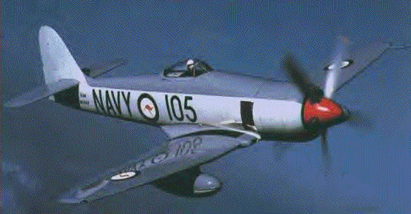 The Hawker Sea Fury was designed as a smaller and lighter naval version of the Hawker Tempest. The Sea Fury had folding wings and tail-hook. The Sea Fury FB.11 was a fighter-bomber capable of carrying bombs and rockets under its wings. Most of the 860 Sea Furys built went to the Royal Navy, including 60 Mk.20 two-seat trainer versions.