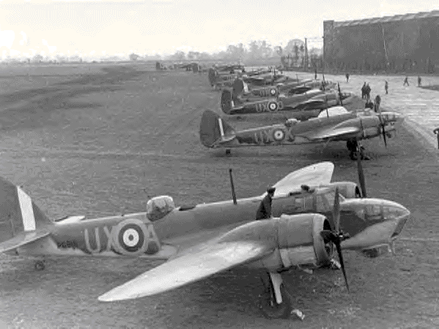 Development of the model 142 civil transport, that was faster than the R.A.F. fighters when it appeared. In the early years of W.W.II the Blenheim was used as bomber, fighter, night fighter, reconnaissance aircraft and close-support aircraft. It was very vulnerable to enemy fighters. Early models had a blunt, glazed nose, but the Mk.IV featured an elongated 'stepped' nose with an asymmetric shape, and the nose of the Mk.V was even longer. Blenheim Mk.IV was a standard light bomber, Mk. I a fighter, Mk.IF night fighter and Mk.IVF an attack/fighter aircraft.