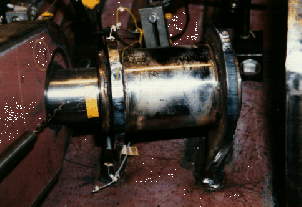 The Damages of the Atlantic Lock All three lugs holding the two bolt bushes had been torn apart in the 8 and 2 o'clock positions. The starboard bush had been torn off the transverse lug and had disappeared. The port bushing, welded to two lugs, had also disappeared, in spite of the fact that it should have been attached to the locking bolt. The locking bolt itself was seen attached to its hydraulics in the pushed open, i.e. locked position. The bolt was salvaged and later thrown back into the water without being photographed.