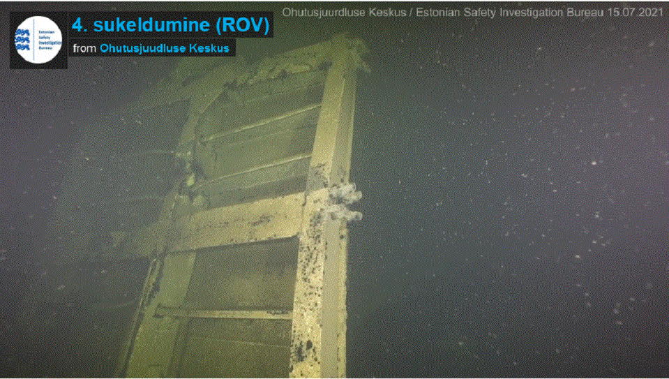 Men sommaren 2021, när SHK och estniska AIB filmade vraket, var sprickan försvunnen och rampen öppen och, när esten Margus Kurm filmade vraket med en ROV augusti 2021, konstaterade han att rampen hade lossats från vraket och placerats lutande mot styrbords överbyggnad och täckte det sprängda hålet, där Kurm filmade även andra sprängskador i förskottet som aldrig rapporterats av JAIC. De har rapporterats i estniska media. Dessa skador uppstod när visiret sprängdes loss från vraket på havsbotten i oktober 1994 av svenska flottans röjdykare! Här kan vi se rampen: