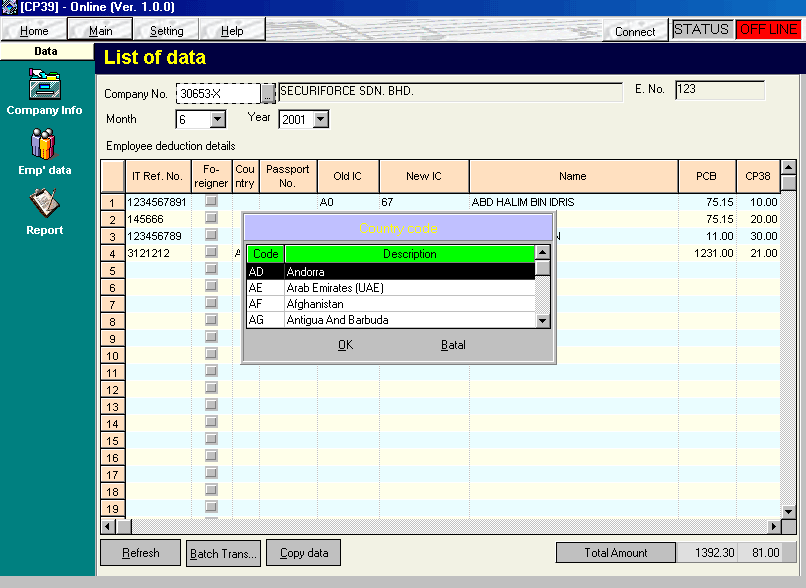 To see a employee data click EMPLOYEE DATA icon at the left screen. Employee data screen will appeared.