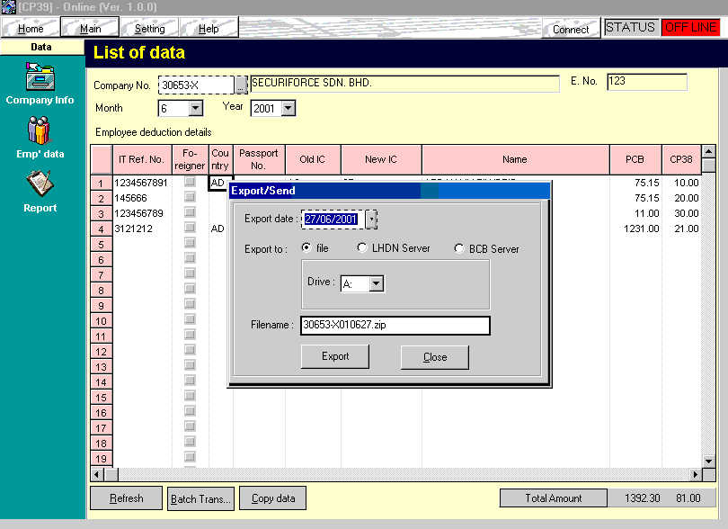 To transfer all the data to CP39 server click BATCH TRANSFER button.