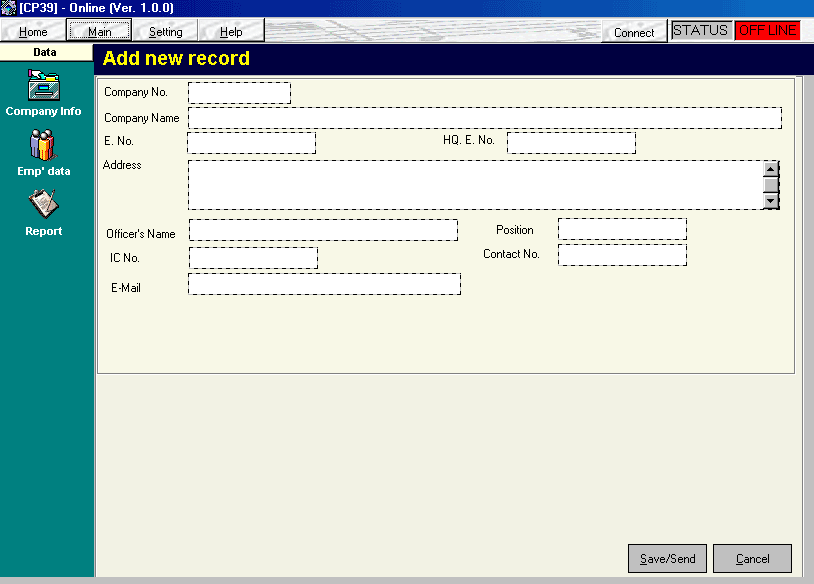 After edit the data click SAVE/SEND button to send a data to CP39 server.
