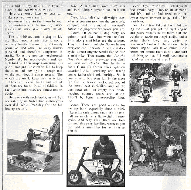 Here is another article on The Mini-bike when they were just beginning to get very popular. I don't know who wrote it but it is worth the read.
