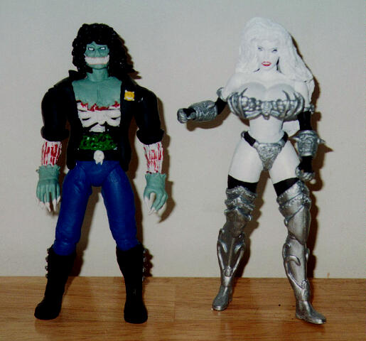 Lady Death and Evil Ernie Again, I had these way ahead of their professional creation. MACs Evil Earnie puts mine to shame, but I do LOVE my big boobed Odyssey Lady Death! Made from Grimskull and Zealot