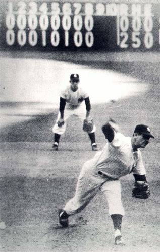 | Frequently a little known player shines in post season play, and Don Larsen is a prime example. Regarded as an "average" starter, Larsen achieved immortal baseball fame on October 8, 1956 when he pitched a perfect game in the fifth game of the World Series against the Brooklyn Dodgers. Not only is this the only perfect game to be hurled in the World Series, but it is the only "no hitter" of any kind recorded in post season play. |