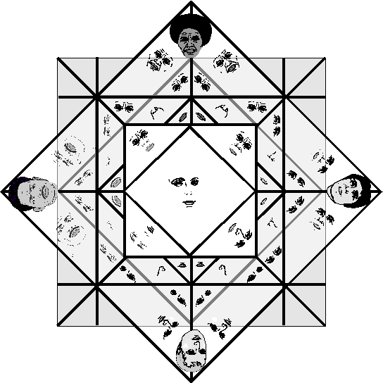 Most important, our personal interpretations of our most abstract realities must align with the truth that is revealed though our daily lives. We must develop an organic relationship with the symbols and concepts that guide our lives. Otherwise, we risk becoming philosophical hypocrites, creating the most sophisticated and lethal weapons against ourselves, each other, and all of humanity. In order to assure harmony on an inner, interpersonal, and international level, we may shift our meditations to our cosmic cubic structure and back again to our sacred symbols. Thus, we may realign our particular facet of spiritual light within the universal scintillating diamond.