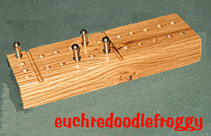 The euchredoodlebiddy is shipped with red, white and black wooden pegs (other colors