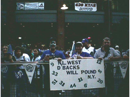 Historic first ever playoff game to be held in Arizona. Here's a few scenes from that evening from Bank One Ballpark ( BOB). To see a larger view, click on the image.