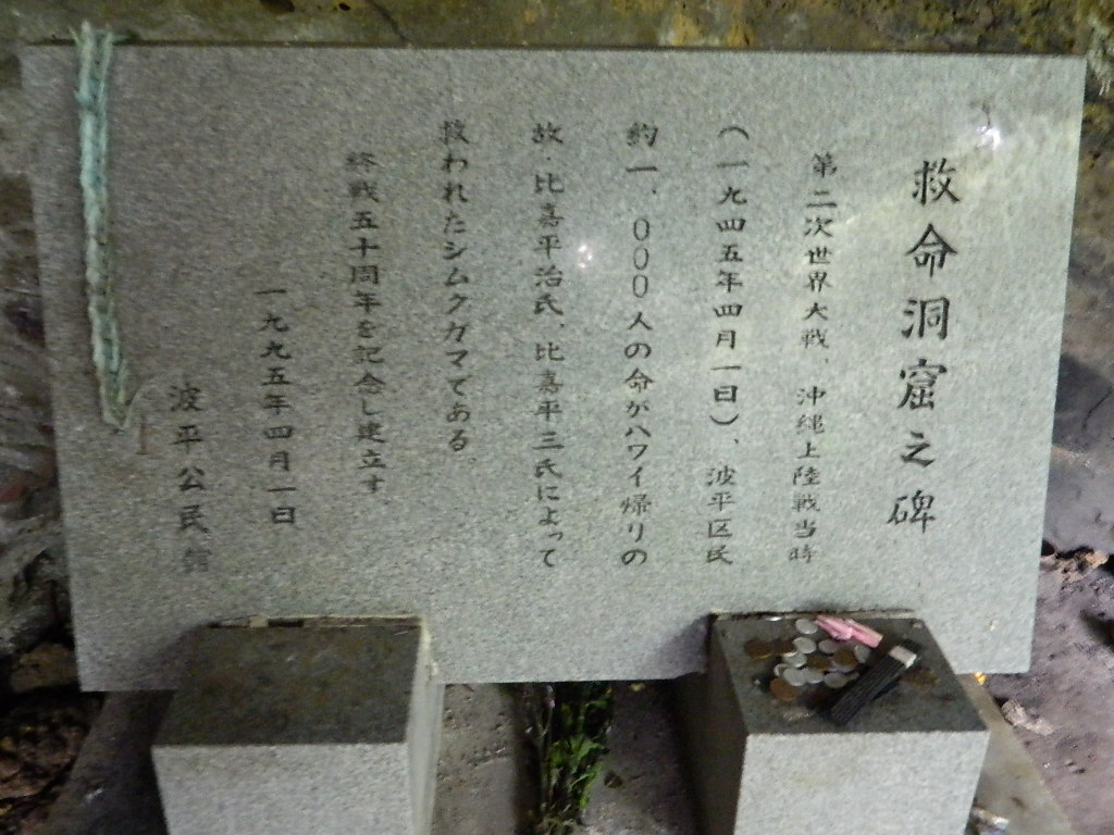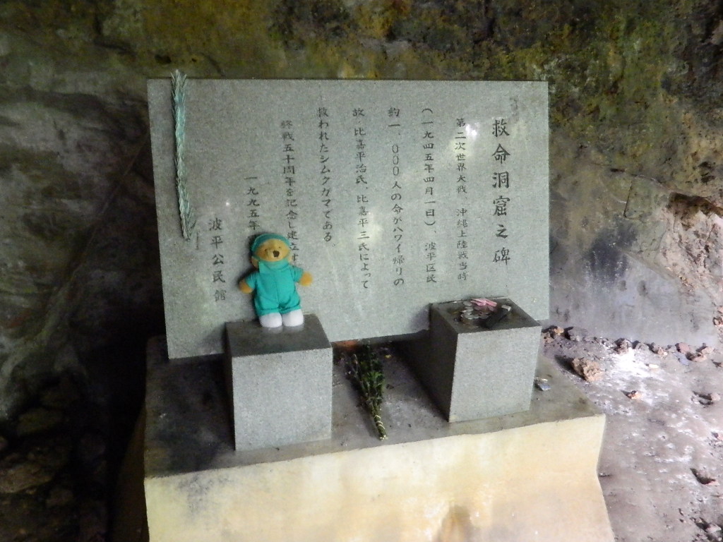 (In 1995), on the 50th anniversary of the battle, survivors dedicated a monument at the mouth of the cave to Higa and his nephew. What had happened at Shimuku Gama was a stark contrast to the fate of people huddled in a cave called Chibichiri Gama, in the same village.