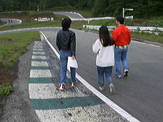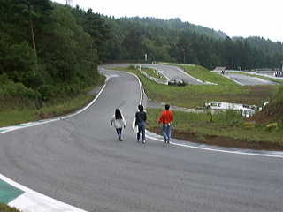 | 全長1200mのサーキット。 とりあえず、歩いてみる。写真はホームストレート以外の唯一スピードに乗れるポイントである。 |