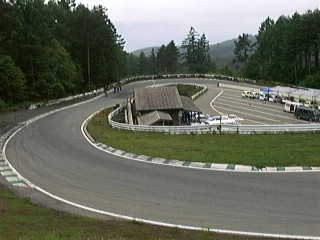 | 右前方に見えるのが魔の最終コーナー。浅賀が大激突をする前のタイヤの壁です。私もここで何度もスピンしかかった…。 | |