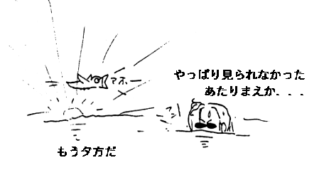 | 私はちょっと休憩した後、浅賀とはせがーのチャプチャプに合流。(だって、なかなかダイバー達とは一緒に泳ぐ機会がないからさ) その時、リチャードは既にさっさと陸に上がっていた。さて、この時の事だが、何を見たとかそういう話は一切記憶なし。なにしろ、前半、玲子さんと出かけた時に巻き込まれた水流が今回はさらに激しくなっていて、全力で漕いでもまったく進まないどころかどんどん沖に流される。さすがに体力も続かないし、ボートダイブの時と違って、目ざとく見つけて拾ってくれるボートマンもいない。本気で不安になった。 |