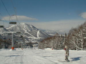 | さあ行くぞ! と気合い十分のゆみぴ | 結構すいてるゲレンデ お天気良好! |