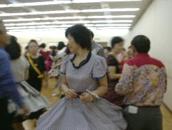 | なぜか記念撮影? | 長い休憩に待ち切れず、陣地を取り始めるダンサー達 |