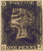 It might seem strange that color would be an issue in regards to the Penny Blacks considering that they are in fact black! However, there are to considerations in the area of color. The first is the effect of plate wear on the observer. The Stanley Gibbons catalog provides the categories "intense black," "black," and "gray black." As the details of the portrait and the machine turned background design gave way to wear, the amount of "white" space exposed in the design produces the appearance of a lighter and in the case of heavy wear, gray appearance. It makes sense that the catalog value is higher normally for the intense black or gray black stamps as the intense stamps are early printings which show great clarity and the beauty of the engraved design. It is also an aid to plate identification because plate dots and guide lines and other minute details are most likely still intact on the early printings. The gray stamps are worn, and reveal clues as to which plates they originate from, with or without repair.