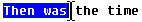 Note in the above example that I have highlighted the words "Then was", and " the time" remains unhighlighted. If you look carefully, you can also see that the keyboard cursor is between the "s" and the mouse cursor, which is presently in the shape of an I-beam.